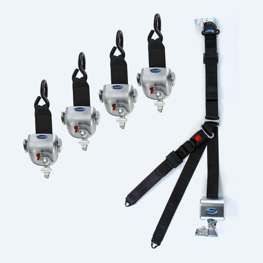 Q'Straint 4 QRT-360 Retractors with Slide 'N Click Fittings and Retractable Lap & Shoulder Belt Combo | Q-10008