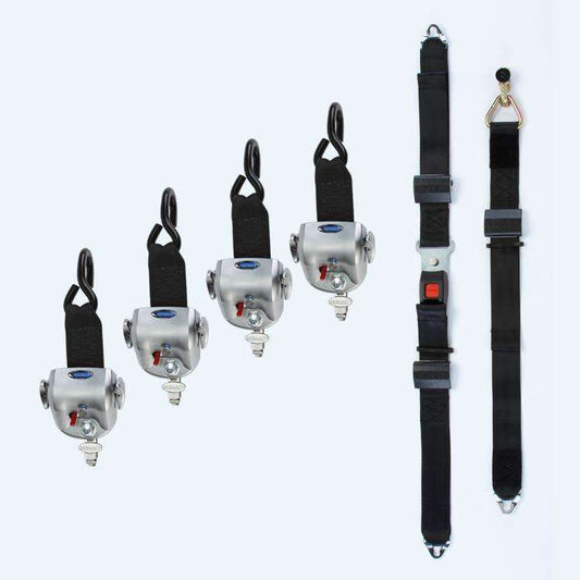 Q'Straint 4 QRT-360 Retractors with L-Track Fittings; and Retractable Lap & Shoulder Belt Combo | Q-10007