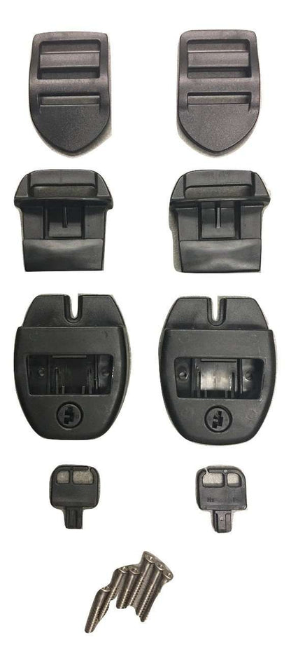 Kit Includes 2 Keys, 2 Male sides with Lock, 2 Female sides with Center Release, 6 Stainless Steel Screws, 2 Super-locks for Strap Adjustment