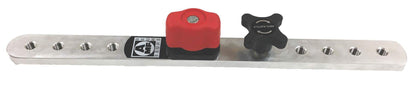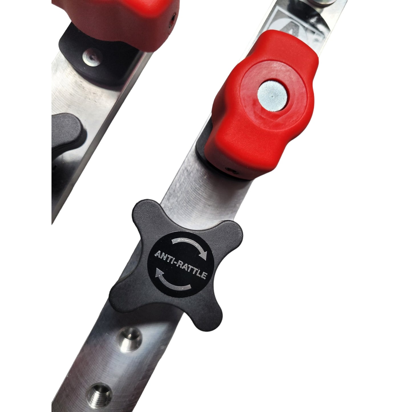 Aluminum Guide Rail fits into an L-Track or Protektor floor anchorage track to guide the installer to a pre-determined tie-down point. The Aluminum Rail can be 'locked' into the floor anchorage track by hand-tightening an integral red knob twist lock.