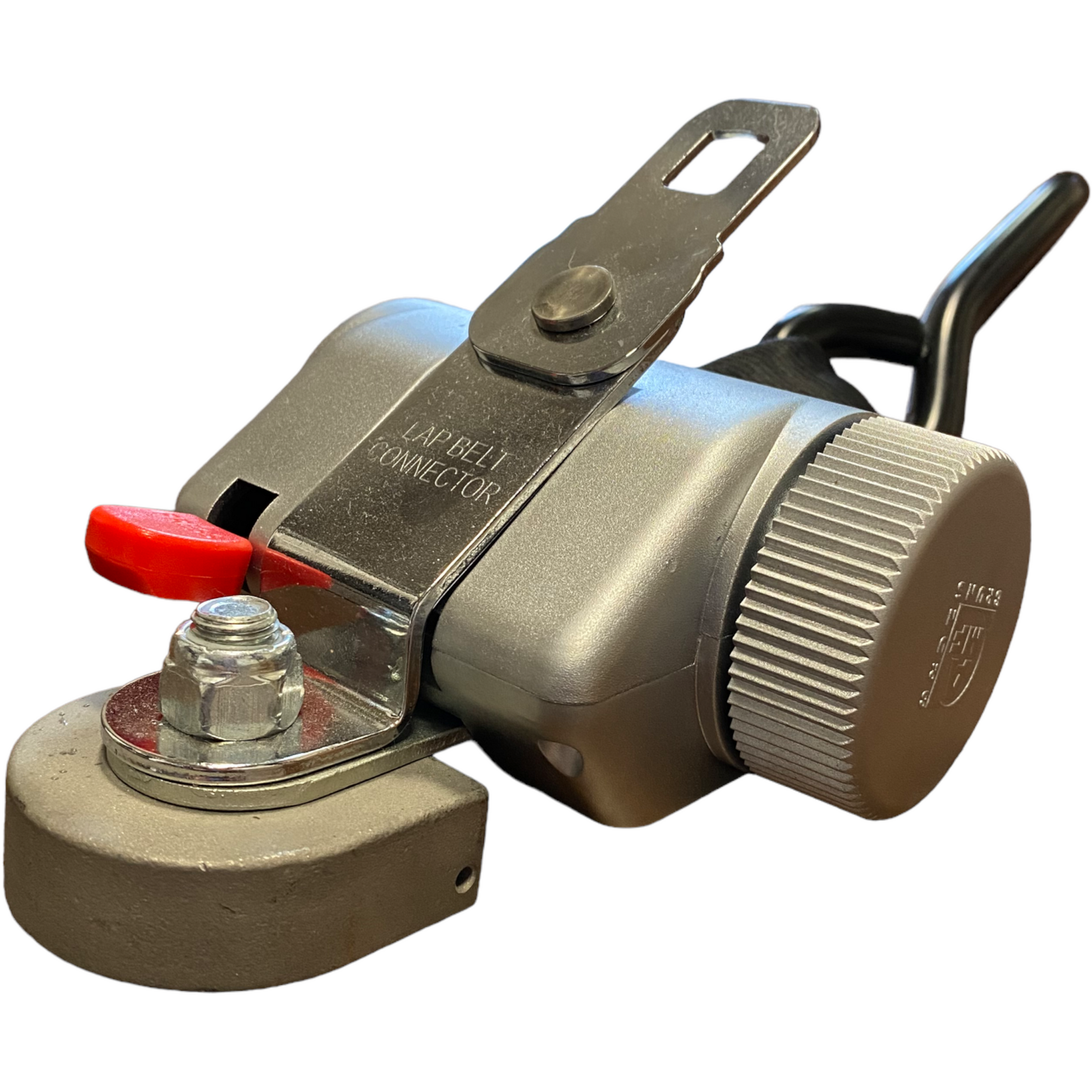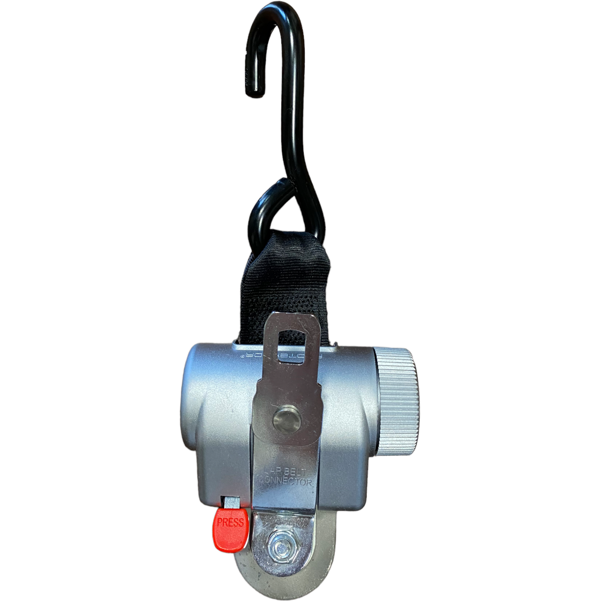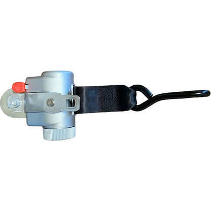 The retractors are anchored to the vehicle floor with an L-Track Fitting or a Smart Fitting and can be easily tethered to the wheelchair with a J-hook, carabiner, or loop attachment.