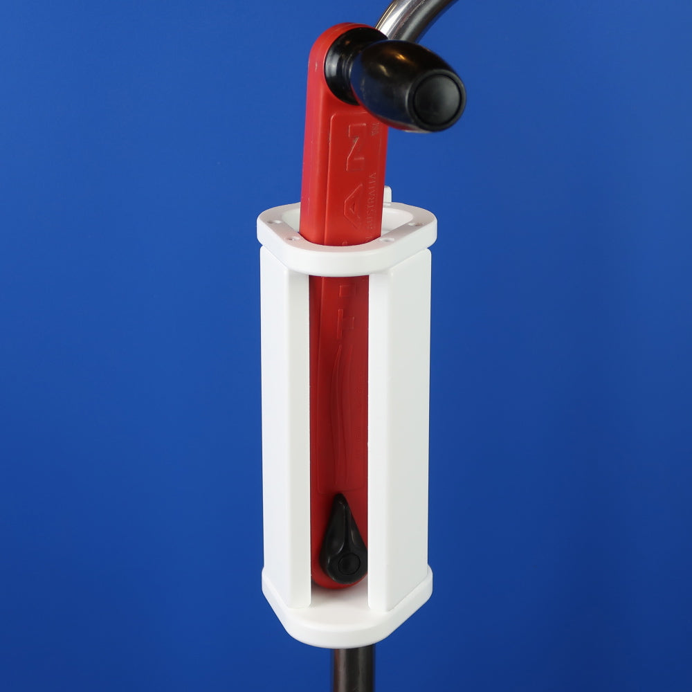 End the search for that elusive winch handle! Snap this unique holder to the pedestal guard where it can easily be reached from either side of the boat or get two and mount them on a stanchion near the winch. Order to fit specific tubing size. Furnished with “U” Clamp and screws for permanent mounting if so desired.