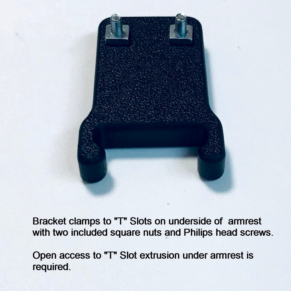 • The Pride Quantum Q6 Edge Bracket mounts in the Dual "T" Track aluminum extrusion underneath the armrest utilizing screws and nuts supplied with the bracket.