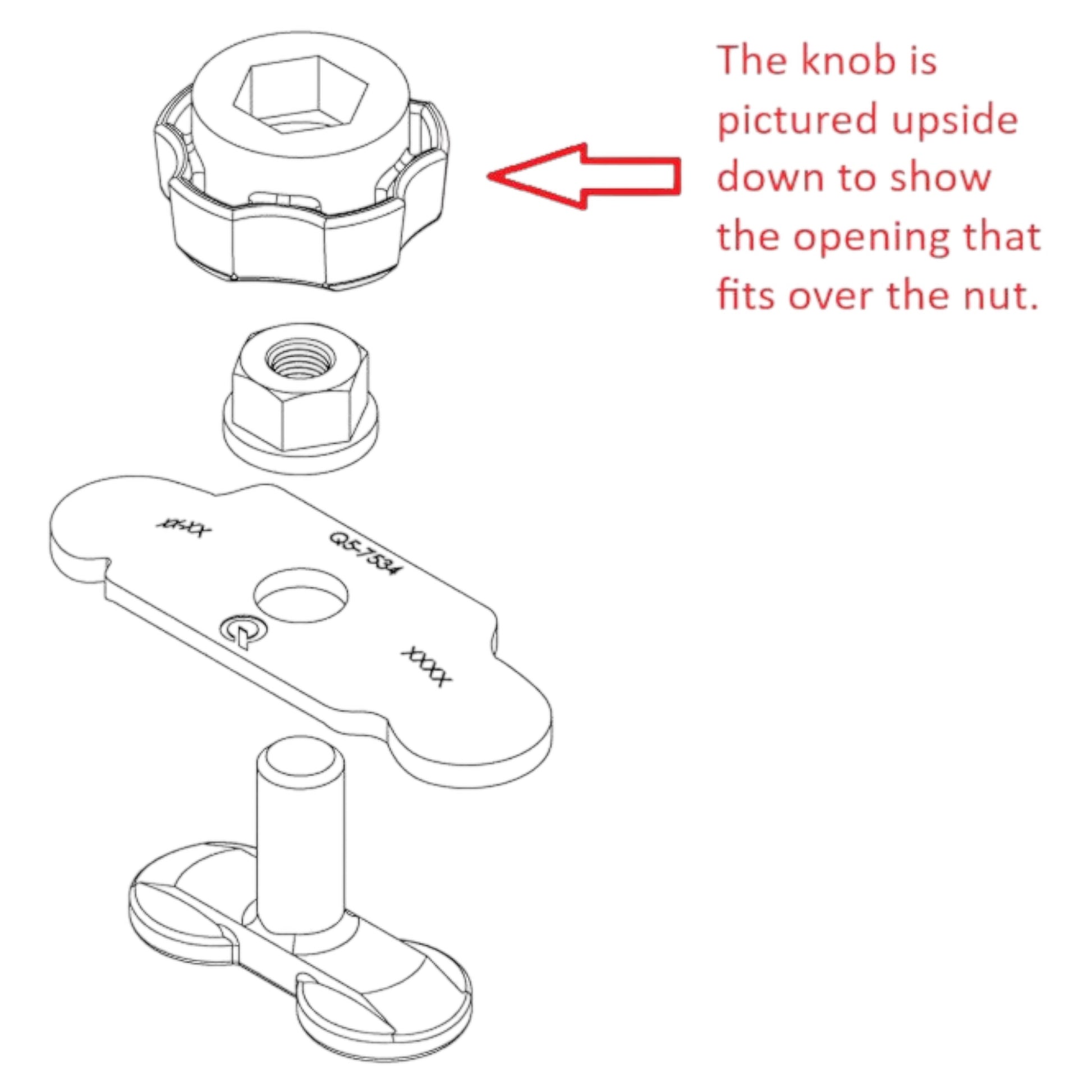 SKU: Q5-7535A-K ITEM: Seat Hold Down Fitting Assembly With Knob  WT: .5 lb