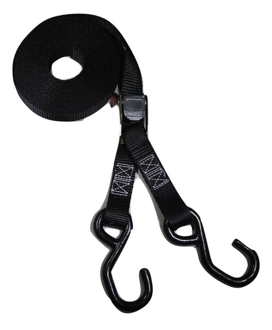 1" x 20 ft Heavy Duty Cam Buckle Tie Down Strap w/ Vinyl S Hooks | C120VS-BK